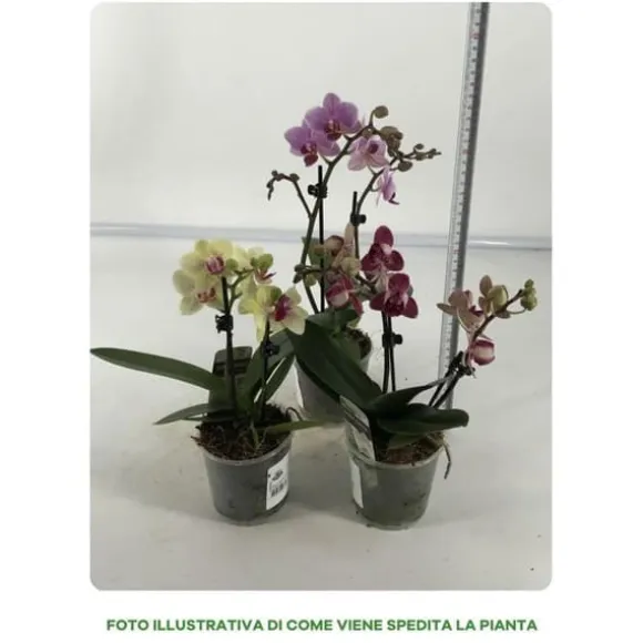 Phalenopsis i kruka 9 cm blandade färger. En ständigt grön växt som är känd för sin vackra och rikliga blomstring. Bladen är stora, ovala och köttiga, med en intensiv grön färg, och har ingen särskild intresse. Blommorna eller snarare blomställningarna är blommande stjälkar. Produken säljs assorterad, skickas enligt tillgång i lager.