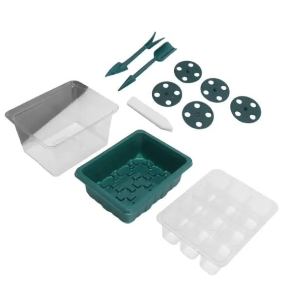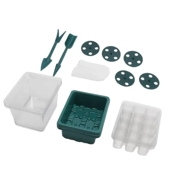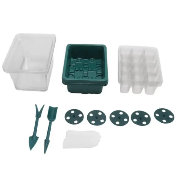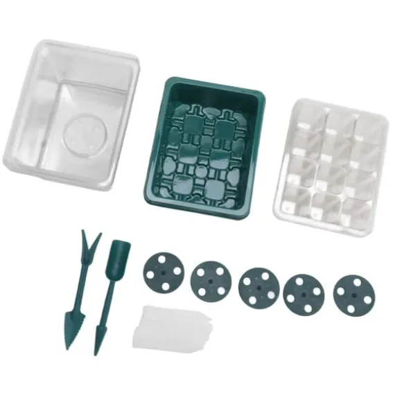 Vårt kompletta kit innehåller 5 genomskinliga lock, 5 12-cells fröbrickor, 5 förseglade basbrickor, 5 justerbara fuktkupoler, 10 växtetiketter och 2 små växtverktyg. Detta omfattande set ger allt du behöver för att njuta av en framgångsrik trädgårdsupplevelse.