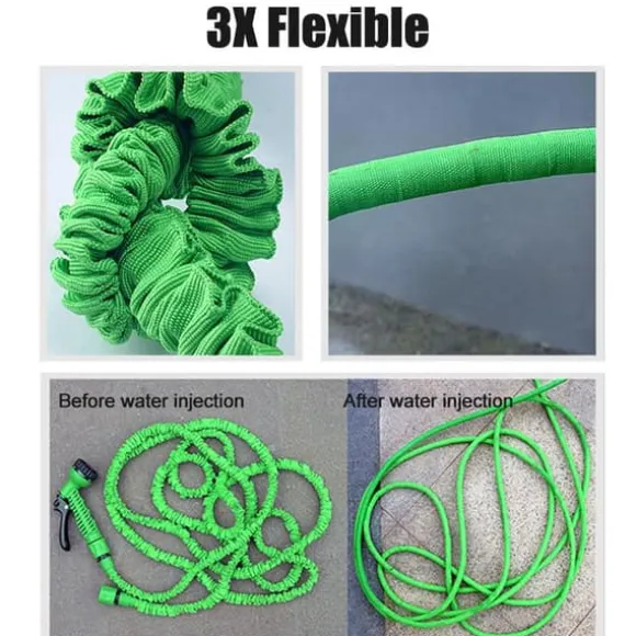 Slangen är tillräckligt flexibel för att knytas utan rädsla för att gå sönder. Produkten är utbyggbar, så det är bekvämare att förvara slangen än vanliga slangar.