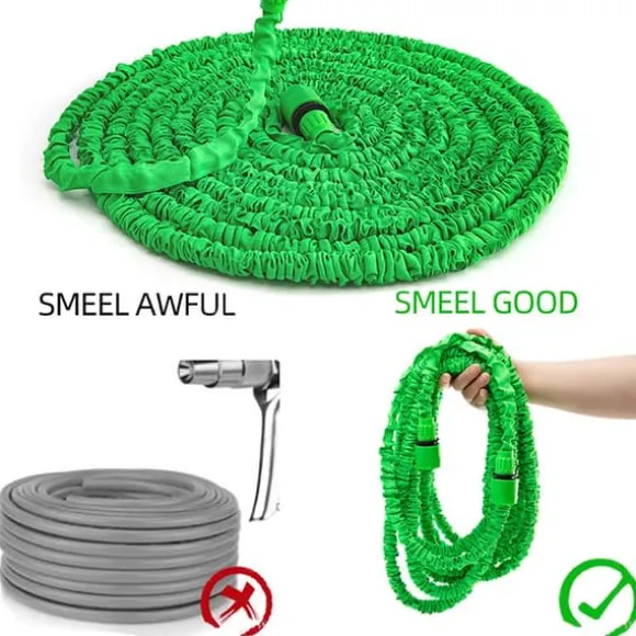Slangen är gjord av miljövänliga material. Jämfört med en vanlig plastslang luktar den gott och har ingen speciell lukt alls.