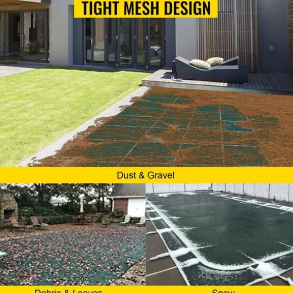 -Tät nät struktur: Detta poolskydd har en tät nätstruktur som låter vatten passera för effektiv dränering. Dessutom blockerar den fallna löv, snö eller skräp perfekt och lämnar en kristallklar pool nästa vår.
