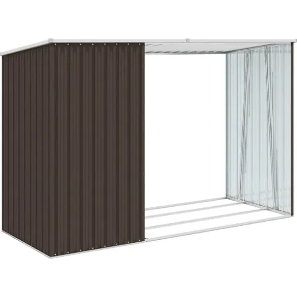 Trädgårdsskjulet består av en vedförvaringsplats och ett stort skjul med gott om plats för att organisera dina trädgårdsredskap. Eftersom det är tillverkat i galvaniserat stål kräver det minimalt underhåll och är väldigt hållbart. Regnvatten dräneras automatiskt från taket tack vare dess sluttande design.