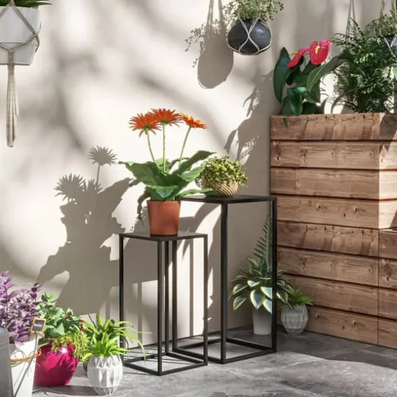 Upptäck vårt 2-pack blomsterställ i industriell stil – det perfekta komplementet till din samling av krukväxter. Den robusta konstruktionen i svart stål ger varje rum en touch av elegans. Med två nivåer i olika höjder möjliggör dessa växtställ en visuellt tilltalande arrangemang av dina växter. Perfekt för ett stilfullt hem!