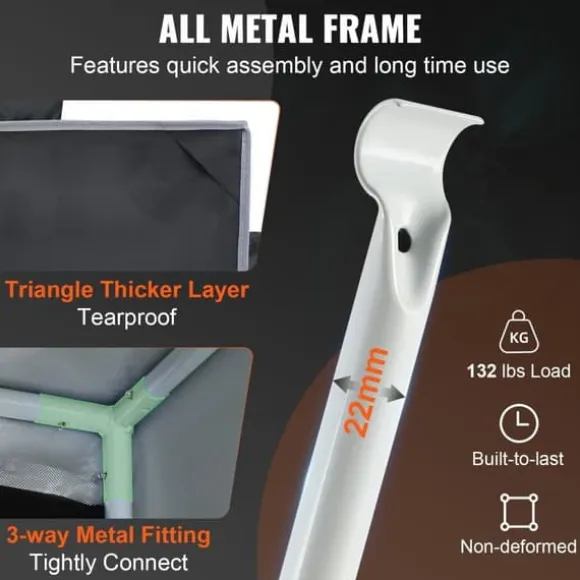 Är du redo att se dina växter blomstra? Det avancerade växthuset är tillverkat av robust 22 mm stål och bildar en stabil struktur som kan bära upp till 60 kg. Det har metallkopplingar som enkelt monteras utan extra verktyg, vilket sparar tid. Dessutom har tältet extra tjocka triangulära lager som förhindrar brott och säkerställer långvarig hållbarhet.