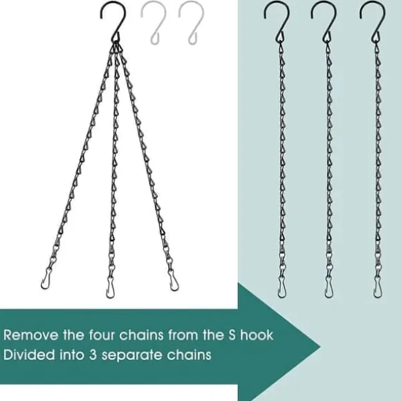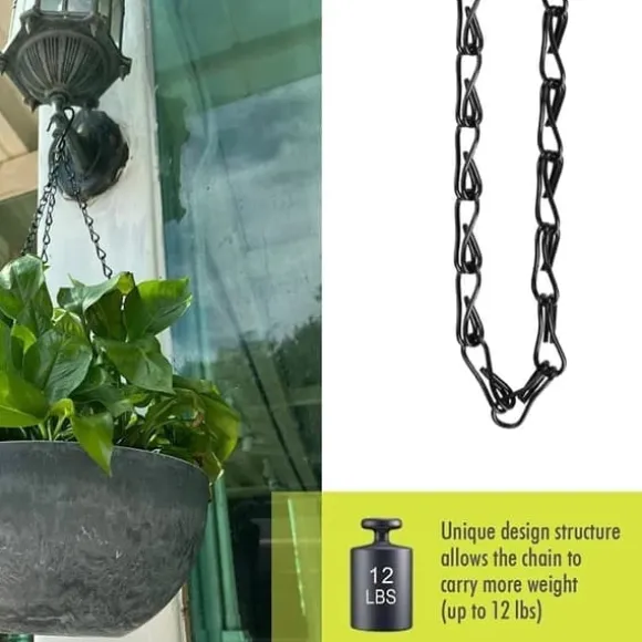 50cm Hängkorgskedja: Med en bärförmåga på upp till 12 lbs är kedjan idealisk för de flesta tunga fågelmatare och blomkrukor. Den tydligt behandlade ytan gör den perfekt för alla typer av hängande dekorationer och ger din trädgård en klassisk, tidlös stil.
