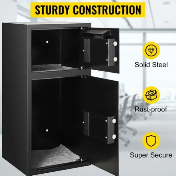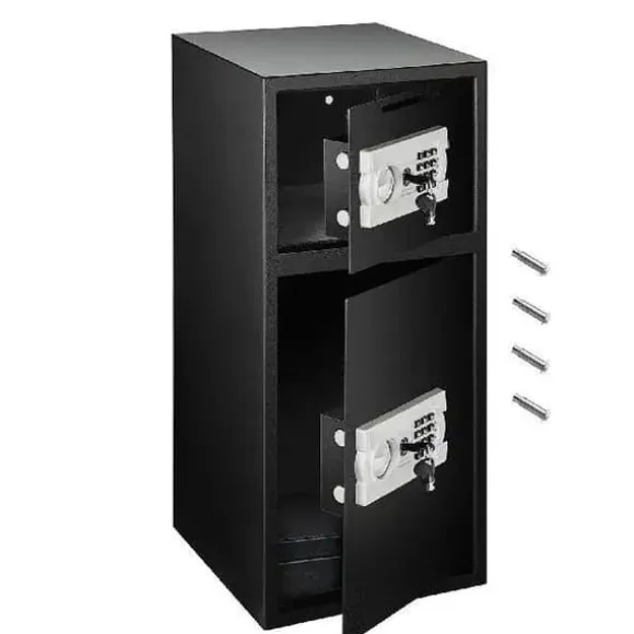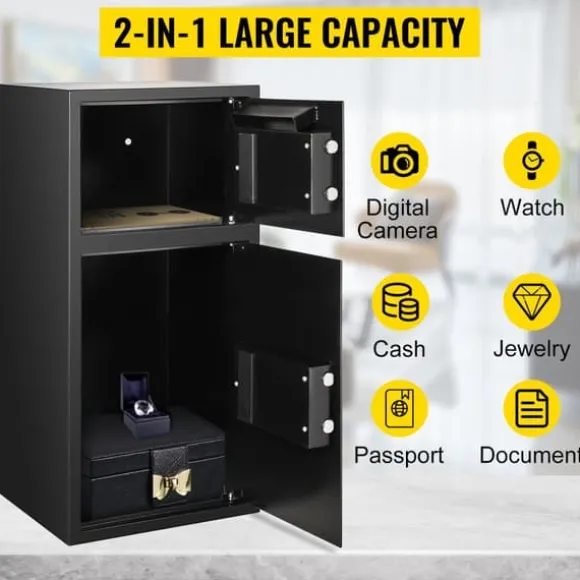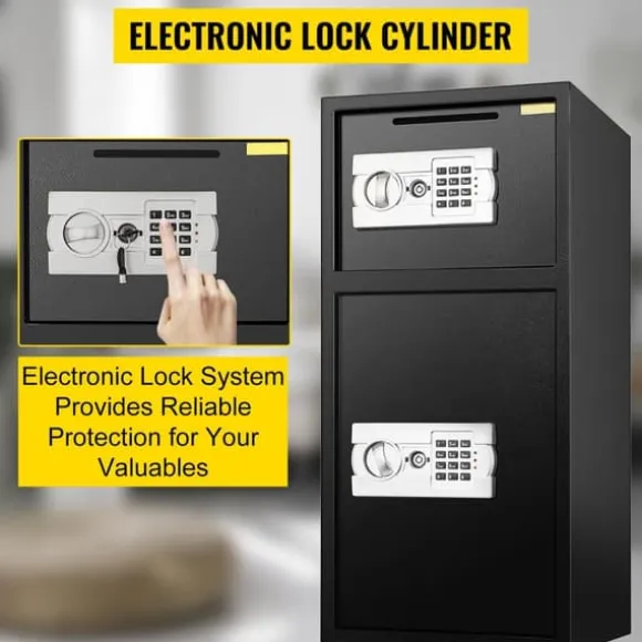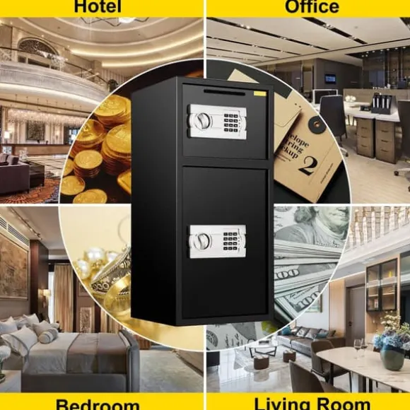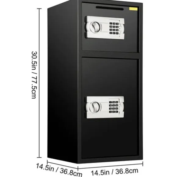 Detta digitala dubbeldörrsskåp är det bästa kassaskåpet som hjälper dig att förvara dina tillhörigheter. Den är byggd med en kraftig stålkonstruktion; enheten förvarar kontanter, smycken, skatter, dokument och andra värdesaker. Detta digitala dubbeldörrsskåp är ett utmärkt val för bekväma kontor, hem, butiker, hotell och mer.