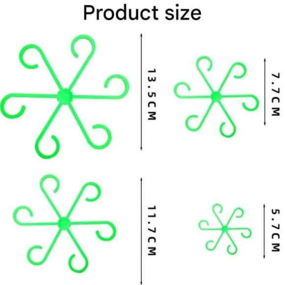 Lätt att använda – Växtstöden liknar stabilisatorer, med en enkel och lättanvänd design. Användare behöver bara fästa krokarna på grenarna för att fixera växtrankorna i önskad position. Höjden och positionen på stödstöden i olika storlekar kan justeras efter växternas tillväxt. Främjar växternas ordnade tillväxt och gör trädgårdsarbetet enklare.