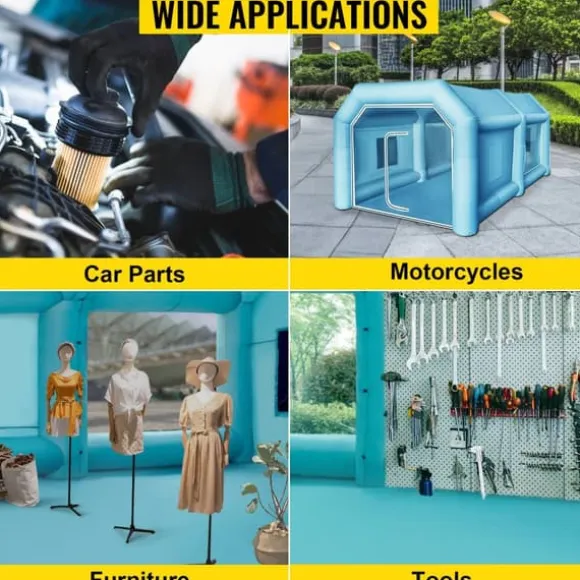 Denna kraftiga uppblåsbara mobila målarbås kan användas i stor utsträckning för att måla och reparera bildelar, motorcyklar, möbler, verktyg etc.