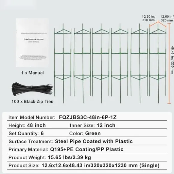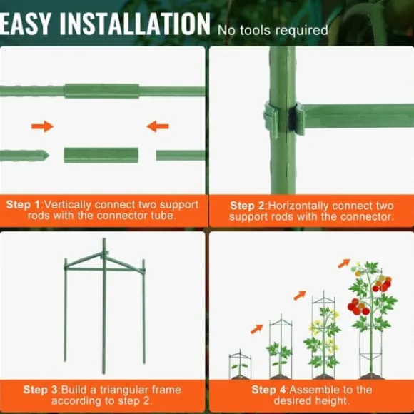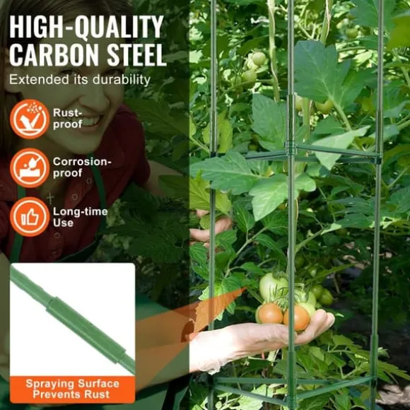 Enkel installation och förvaring: Enkel och bekväm att installera – anslut stödstängerna med medföljande tillbehör. När den inte används kan trädgårdsstakens tomatbur enkelt demonteras för kompakt förvaring, vilket sparar utrymme i ditt lager.