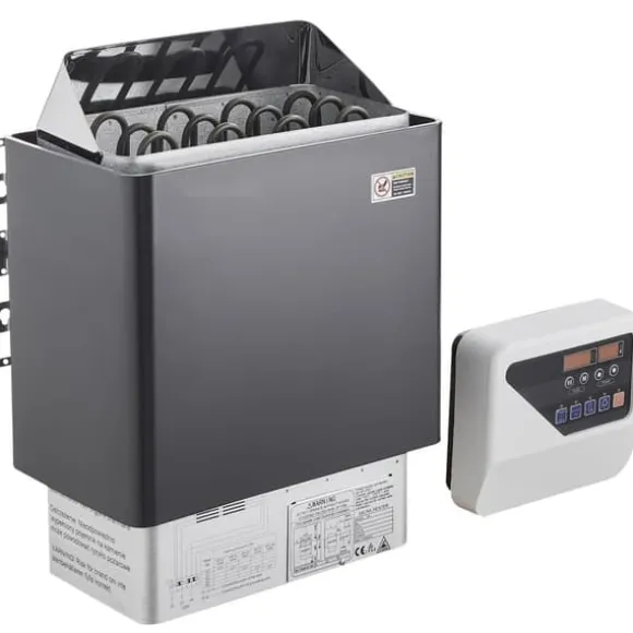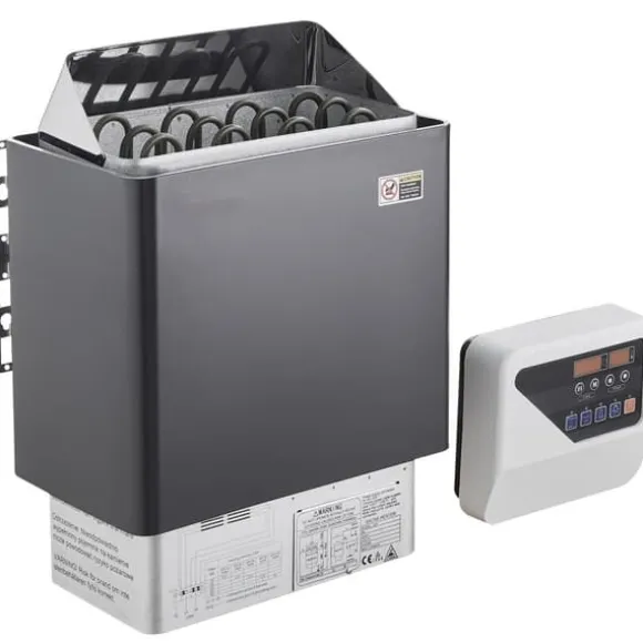 Vårt bastuaggregat har en effekt på 6,2KW och är perfekt för basturum på 177-318 ft³ / 5-9m³. Med måtten 16,22 x 10,8 x 22,44 tum / 412 x 274 x 570 mm är den idealisk för en härlig bastuupplevelse, kräver 33 lbs / 15 kg bastustenar (INKLUDERAS EJ).