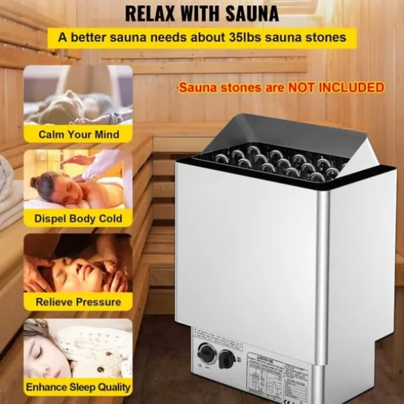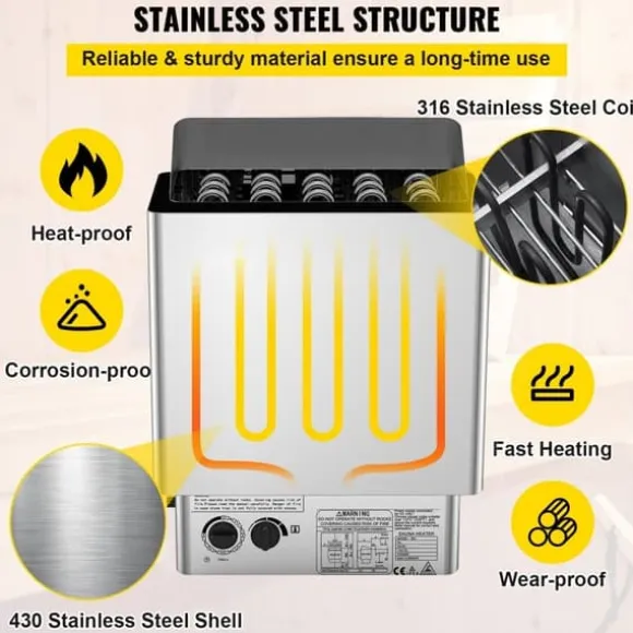 Vår bastuugn är tillverkad av utmärkt 430 rostfritt stål, vilket gör den korrosionsbeständig och hållbar. Med en energieffektiv värmespiralen av rostfritt stål 316 värms ugnen snabbt upp. Dessutom har ytan behandlats med en beläggning för att isolera luften och kontakten med det rostfria stålet, vilket ger en icke-oxiderande effekt.