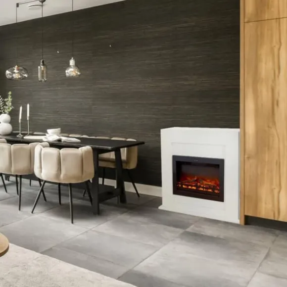 Xaralyn Adra-kaminramen med Flandria elektrisk inbyggd spis. Lämplig för uppvärmning av rum upp till 22 m2 eller som tilläggsvärme för större rum. Den dekorativa eldstaden Adra kan placeras i vilket hus och lägenhet som helst, eftersom ingen rökutsugning krävs.