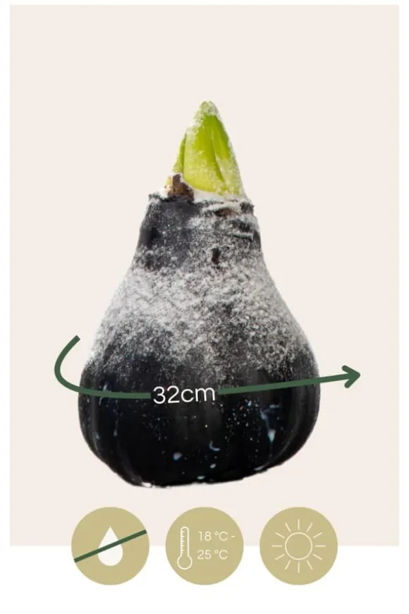 När lökarna levereras har de en omkrets på cirka 32 cm.