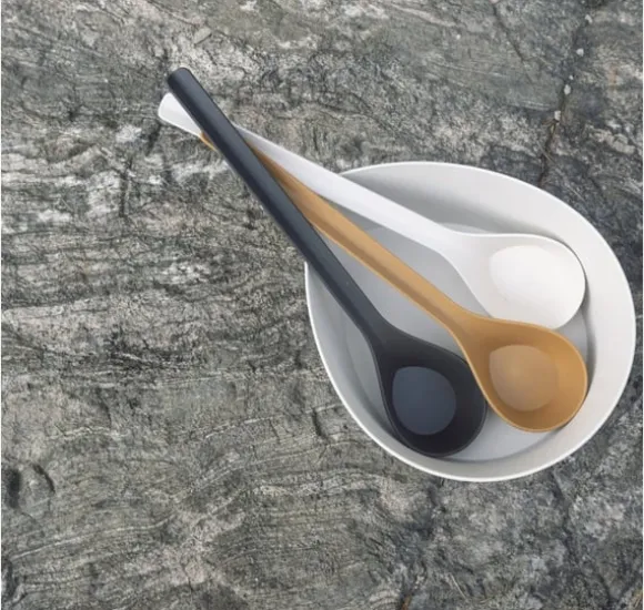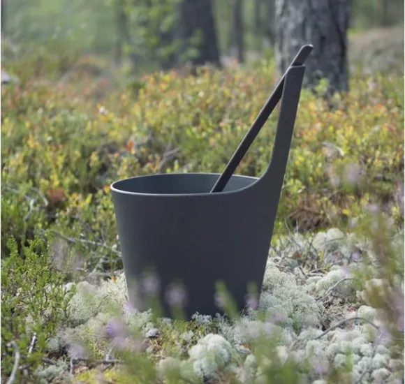 En droppformad bastuskänk tillverkad av biokomposit i Finland.