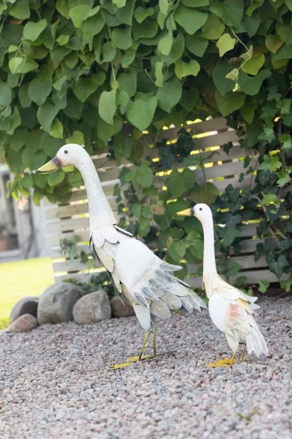 En härlig, ståtlig, grann anka i hamrad plåt för att ställa inomhus eller i trädgården, varför inte med sin större kompis?