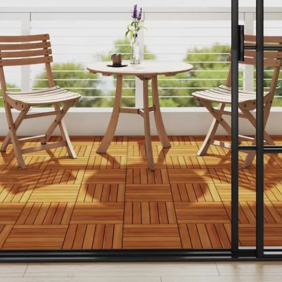 Balkongplattorna är skapade av akaciaträ, vilket är ett tropiskt träslag. Plattorna är väderbeständiga och extremt tåliga.// Tack vare dess passform i varandra kommer de att låsas samman och bilda en stabil gångyta.