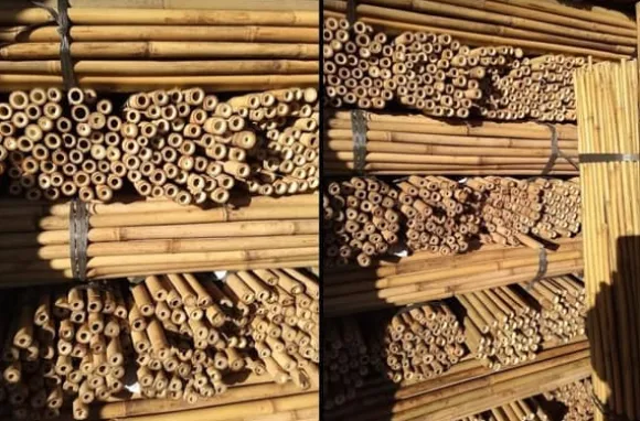 Vi har importerat bambupålar i nästan 30 år – vi har kontrollerat många leverantörer och ger dig bambu av bästa kvalitet – inte nödvändigtvis den billigaste. Nedan finns bilder av våra stolpar i vårt lager