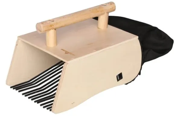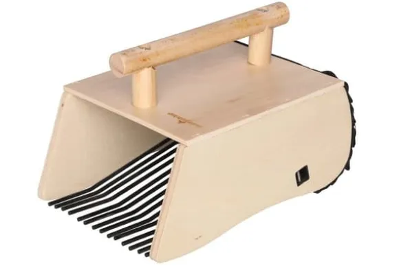 Med sitt stora, greppvänliga handtag och lätta design i trä (poppel och tall) blir den bekväm att använda under längre turer i skogen. Utrustad med högkvalitativa metallspikar för effektiv bärplockning och ett smidigt format som passar både nybörjare och vana plockare.