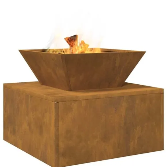 Solid och stabil ram gör att den håller länge. Den har en hängande krok och hjul för att kunna flytta den enkelt. Corten stål får en fin rustik känsla med tiden. Perfekt för camping och trädgårdsfester.