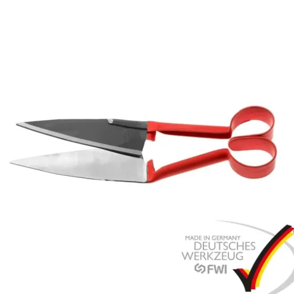 BERGER formklippningssax / fårsax är det traditionella professionella verktyget för fårklippning och är idealiskt för toppbeskärning av boxträd, murgröna och andra prydnadsbuskar. De smidda, självslipande, 140 mm långa knivarna på saxen tillverkade i Tyskland skär smidigt utan att plocka, riva eller dra ihop och möjliggör enkelt arbete. Den röda mjuka lackbeläggningen i greppområdet och den vinklade designen med hjärtfjäder ger ytterligare användarvänlighet. Lämplig för vänster- och högerhänta.