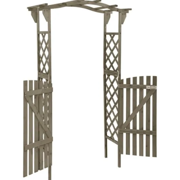 Denna mångsidiga träpergola med grind blir ett dekorativt inslag i din trädgård eller annan utemiljö.