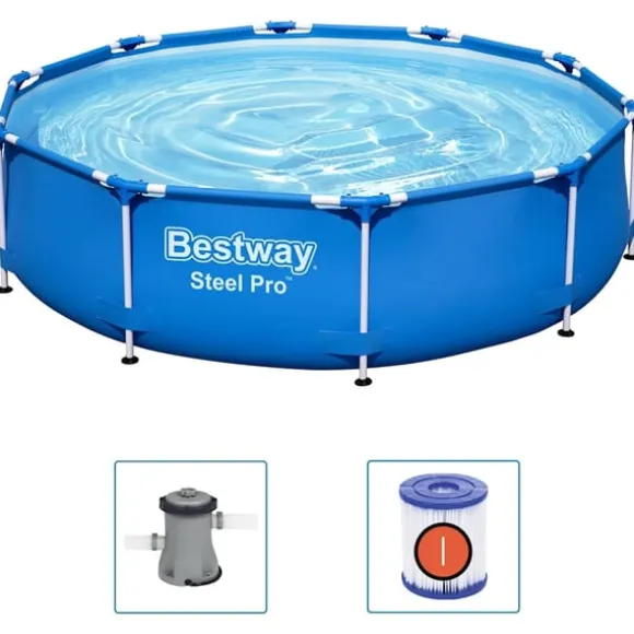 Du kan ha massor av skoj med familj och vänner i denna Steel Pro-pool från Bestway. Den runda formen ger mer plats att bada och leka.