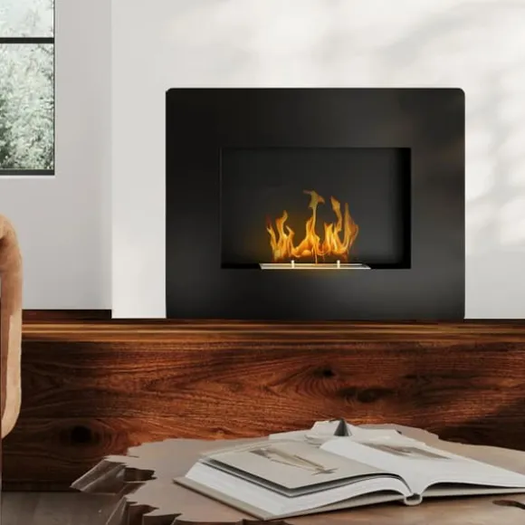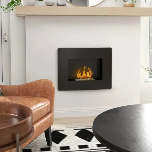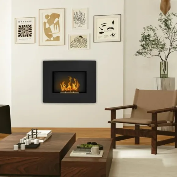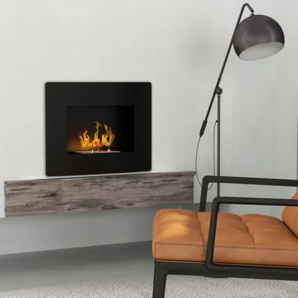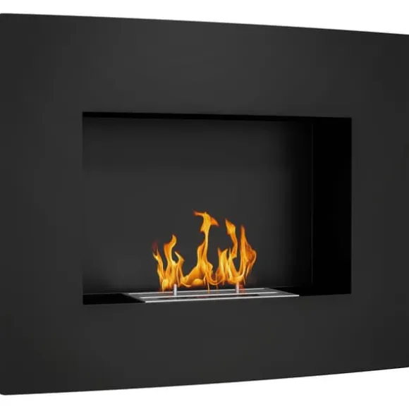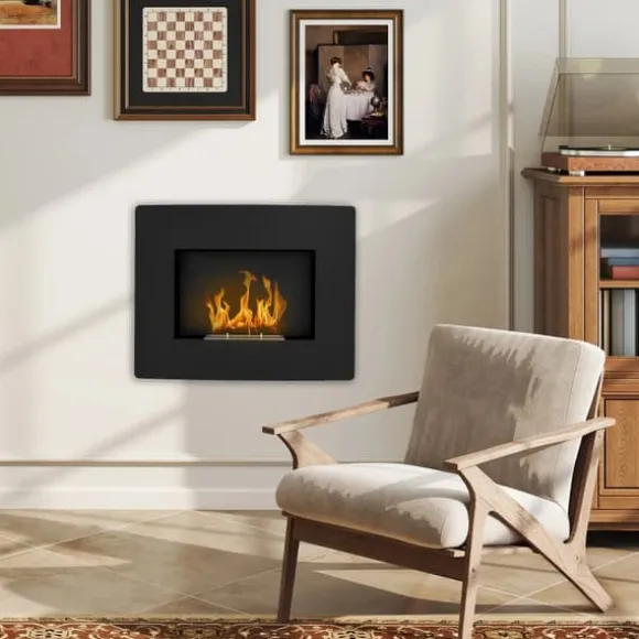 Väggmonterad bioetanolkamin – äkta lågor, ren värmeDenna väggmonterade bioetanolkamin med elegant svart finish och mjukt välvd front skapar en ombonad stämning med riktiga lågor. Tack vare ren etanolförbränning får du värme utan rök, sot eller lukt – perfekt för moderna hem.