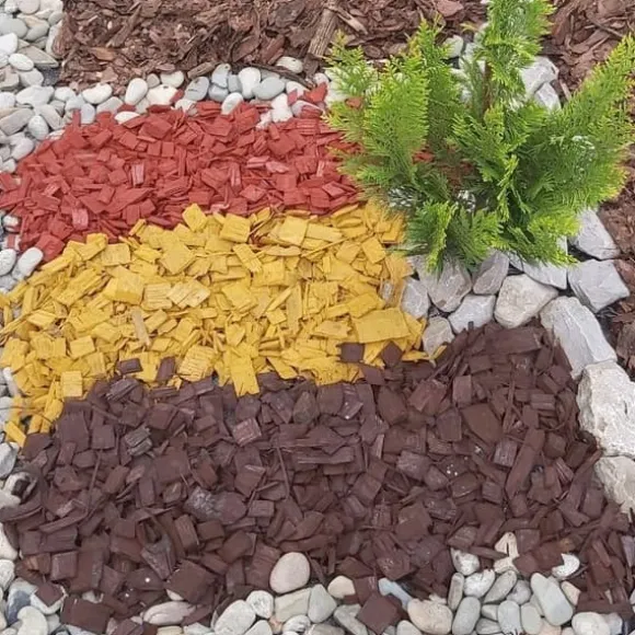 Biovita träflis, som är väderbeständig. Färgad med högkvalitativa färgämnen, så färgen är hållbar och bleknar inte under påverkan av nederbörd och UV-strålning. Färgämnen är olösliga i vatten och påverkar inte substratets fysikalisk-kemiska sammansättning negativt. Viktigt är att träflis också är helt säker för den naturliga miljön. De förorenar inte miljön, och eftersom de är tillverkade av träavfall, dvs. flis, är de helt miljövänliga.