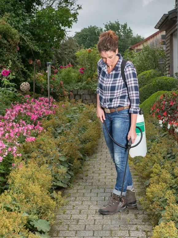 Trädgårdsspruta / tryckspruta som är speciellt lämpad för bl.a. ogräsättika och pelargonsyra.