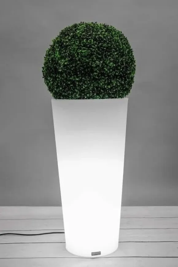 Med sin klassiska form och moderna design lockar blomkrukor med LED-belysning uppmärksamheten hos alla som tittar på dem. Höga krukor är den perfekta lösningen för att inreda ett kontor, arbetsrum eller hotell.