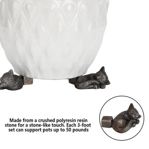2、 Tillverkad av en krossad polyresin-hartssten för en stenliknande touch. Varje 3-fots set kan stödja krukor på upp till 50 pund.