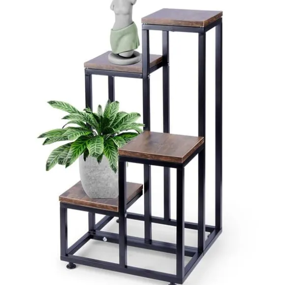 ATTRAKTIVT – Ett blomsterställ i fyra våningar som låter dig förvara blomkrukor eller dekorationer på fyra olika nivåer. Plantställningen har yttermått på 34 x 34 x 69 cm. Den maximala lastkapaciteten är 50 kg. Det kommer att ge en unik karaktär till varje interiör.