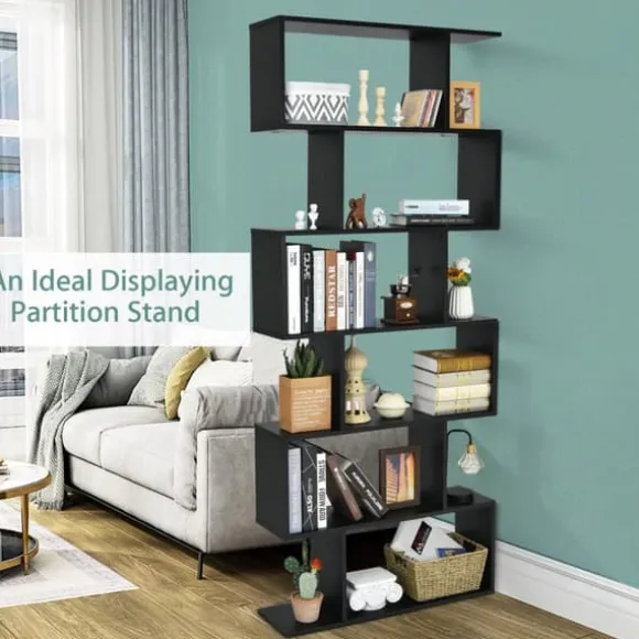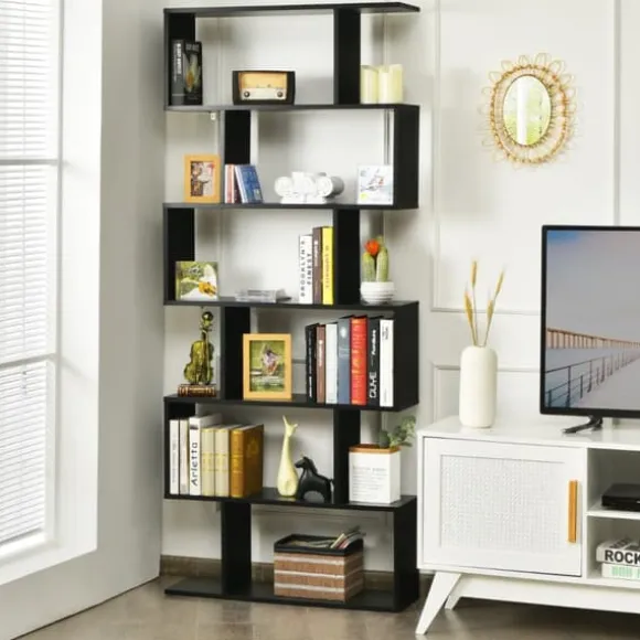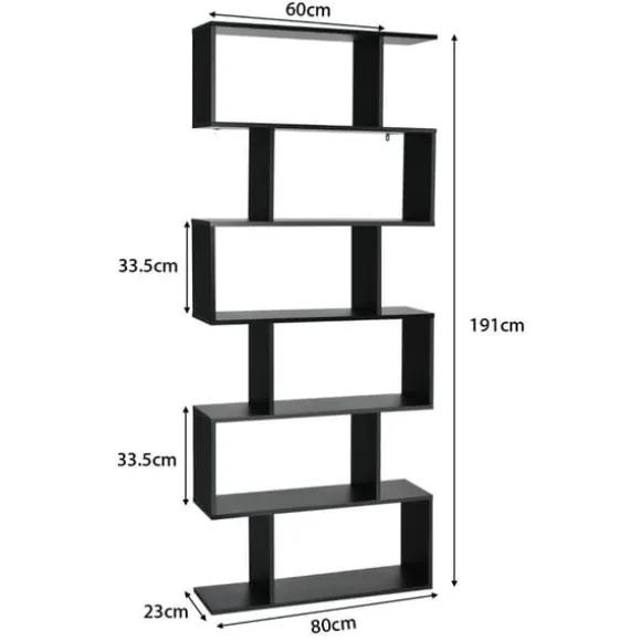 Denna 6-vånings bokhylla erbjuder gott om förvaringsutrymme i en stilren S-formad design, vilket gör den till ett iögonfallande tillskott till vilket hem eller kontor som helst. Den fungerar inte bara som en bokhylla, utan kan också användas som en displayhylla, rumsskiljare och växtställ. Bokhyllan är utrustad med en anti-vältanordning för ökad säkerhet.
