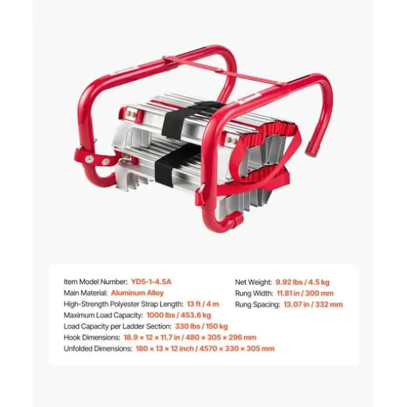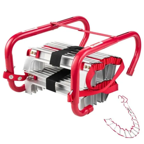 - Förstärkt säkerhetsstöd: Denna säkerhetsstege för brandutrymning är tillverkad av lätt men hållbar aluminiumlegering, brandsäker och värmebeständig. Förstärkt med höghållfasta fästskruvar och ett V-format centralt stöd, erbjuder den maximal stabilitet och säkerhet under användning.
