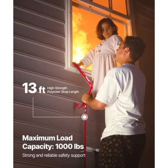 - Hög lastkapacitet: Vår brandstege har en maximal lastkapacitet på 450 kg, där varje stegsektion kan bära upp till 145 kg, vilket gör den lämplig för de flesta användare. Det 4 meter höghållfasta polyesterband ger tillräckligt med längd för flexibel användning och en säkrare utrymning.
