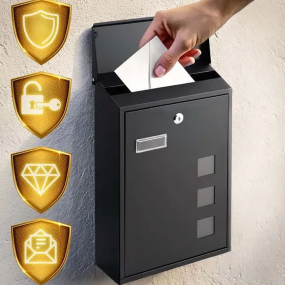 Tillverkad av korrosionsbeständigt galvaniserat stål och pulverlackerad i en elegant antracitfärg, skyddar den inte bara din korrespondens utan smälter också in perfekt i en modern fasad.