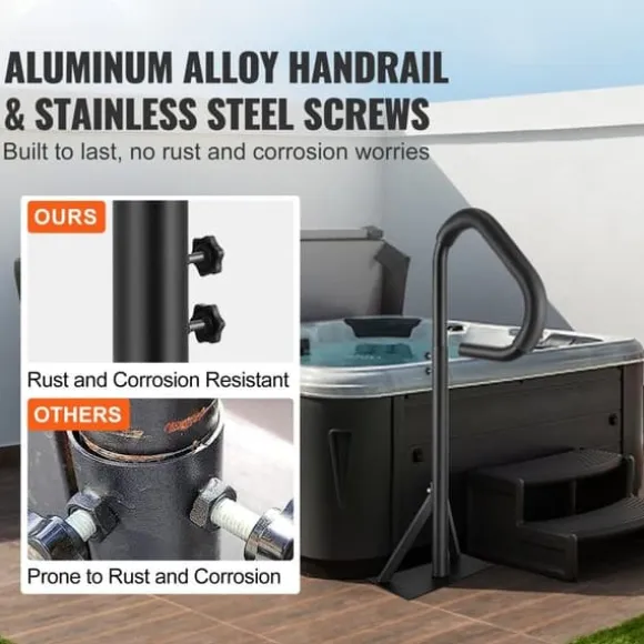 Allsidiga tillämpningar: Detta eleganta pool-säkerhetsräcke är perfekt för simhallar, spa, jacuzzier, vattenparker, handduksställ och mycket mer, oavsett om det är inomhus eller utomhus. Förbättra din spa-upplevelse hemma med ökad säkerhet, komfort och långvarig njutning, och bjud in din familj att njuta av glädjen av SPA-tid tillsammans!