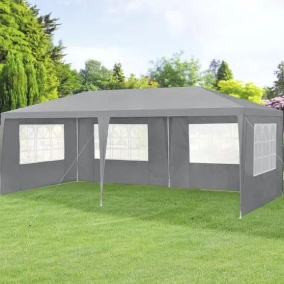 [casa.pro]® Trädgårdspaviljong-Partytält-600x300x255cm-hopfällbar-mörkgrå-vattentät
