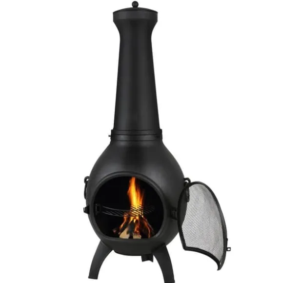 - Grill ingår: Värm och grilla i ett! Vår eldstad i chiminea-stil har en grill, vilket gör den mångsidig för uppvärmning och matlagning. Perfekt för att grilla kött, skaldjur eller spannmål för att tillfredsställa dina utomhuskulinariska behov.