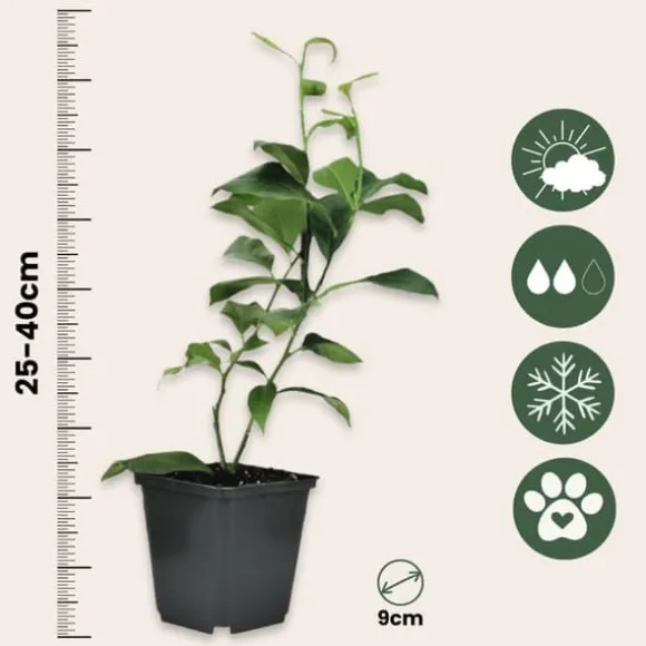 Plantorna har en höjd på 25-40cm vid leverans, mätt inklusive plantskola. Plantorna levereras i en plantskola med en diameter på 9 cm.