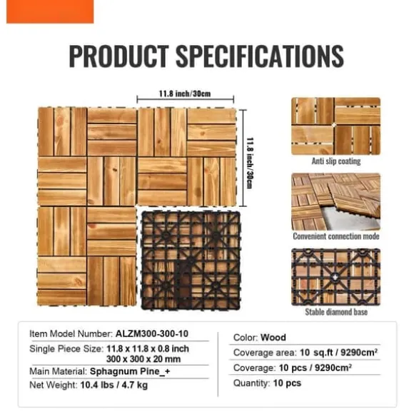 - Täckning: Varje set består av 10 plattor som är 11,8 x 11,8 tum stora, perfekta för uteplatser, verandor, inomhusduschar och tvättstugor.