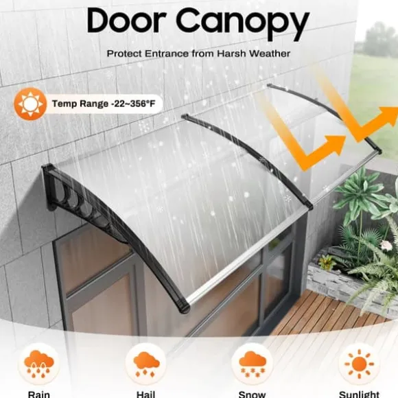 Polykarbonattak över entré, 150 cm brett, ljusgråttSkydda din entré mot regn, snö och sol med ett hållbart och stilrent tak. Den 150 cm breda, transparenta polykarbonatskivan och ljusgrå aluminiumfästen ger lång livslängd, tyst komfort och enkel montering för dörrar, balkonger och skyltfönster.