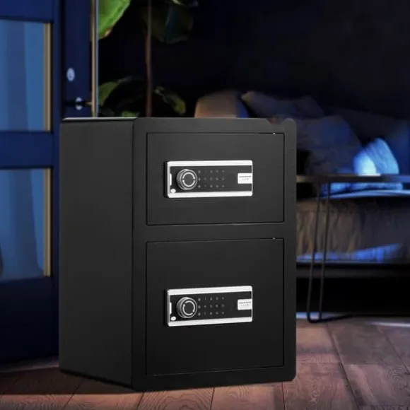 Det säkra valvet innehåller 4 förborrade hål på baksidan och botten, tillsammans med fyra expansionsskruvar, så att du säkert kan montera det på en vägg, golv eller hylla. Dess stora kapacitet är perfekt för att organisera kontanter, pass, smycken, guld, klockor och dokument. Den kan placeras diskret i lådor, skåp eller garderober i hem, kontor eller hotell.