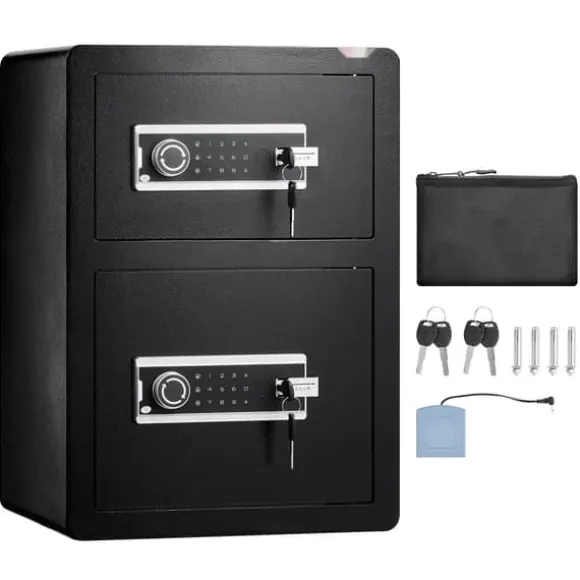 Vårt kassaskåp och låsbox erbjuder 3 upplåsningsmetoder: med en nyckel eller en 3-12-siffrig kod. Dessutom, om du tappar nyckeln och låsets batteri är urladdat, kan du fortfarande använda ett externt batteri för att driva låset och komma åt kassaskåpet med lösenordet.