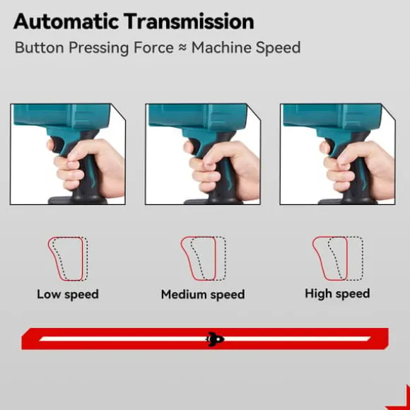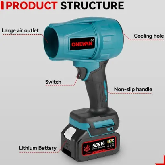 [Borstlös motor i koppar] Motor i ren koppar, hög hastighet, högt vridmoment, överbelastningsskydd, förhindrar utbrändhet. Förbättrar livslängden. [Steglös hastighet] Tryck ordentligt för högre vindhastighet. Ju lägre tryck, desto lägre vindhastighet. Luftvolymen kan justeras när som helst för att möta dina arbetsbehov. [Turbinluftutlopp] Extra stort turbinluftutlopp, vinden blir allt starkare. [Lättviktshus] Lättviktshusdesign, enhandshantering blir inte tröttsam. [Halkfritt handtag] Ergonomiskt utformad, bekväm att hålla i och tröttar inte ut dig även om du håller i den länge. [Litiumbatteri] 10C batteripaket, stor kapacitet. Överhettningsskydd, överspänningsskydd, explosionssäkert och brännskydd. [Brett användningsområde] Uppfyller en mängd olika arbetsbehov, lämplig för lövborttagning, dammborttagning i hushållet, biltvätt, vattenblåsning, industriell dammborttagning etc.Paketinnehåll: