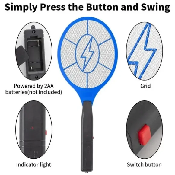 Bli av med irriterande insekter snabbt och effektivt med en elektrisk flugsmälla som dödar insekter vid direkt kontakt. När insekten nuddar det inre nätet uppstår en snabb elektrisk urladdning. Den batteridrivna enheten fungerar utan kemikalier och lämnar inga märken på väggar eller möbler som traditionella flugsmällor ofta gör. Utrustad med ett halksäkert handtag ligger den bekvämt i handen under användning.