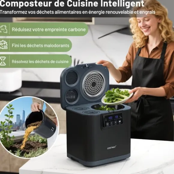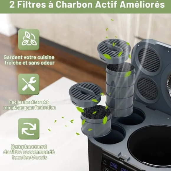 Den 4L elektriska kompostern för köksbänken är en smart avfallsdispenser som minskar matavfallet med 90% på bara några timmar. Den är utrustad med ett avancerat aktivt kolfiltersystem och ett robust blandningssystem, vilket ger en luktfri och effektiv komposteringslösning för ditt kök.