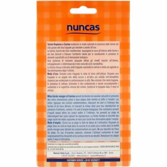Produkt: skåpsmalldjursmedel för kök och skafferi är den perfekta lösningen för att bekämpa livsmedelssmalldjur på ett naturligt, effektivt och diskret sätt. Effektivitet: 3 månader. Egenskaper: anpassad för skafferi och kök, den placeras enkelt i hörn utan att ta upp plats. Den lätta vaniljdoften ökar dess attraktionskraft. Innovativt: det är en säker produkt (den klibbar varken på händerna, maten eller föremålen), diskret; funktionell (den gör det möjligt att markera öppningsdatumet för att veta när den ska bytas ut). Bruksanvisning: för mer information, se produktens detaljerade information. Användartips: låt hålen vara fria så att smalldjuren enkelt kan komma in. Släng förorenad mat och tvätta noggrant behållare och ytor på möbler. Förpackningsvolym: 46,0 milliliter. Förpackningsvikt: 0,046 kilogram. Produktens dimensioner (L x B x H): 11,5 x 2,8 x 20,2 cm; 46 gram. Tillverkare: Nuncas Italia S.p.A. – modell: 4000504.