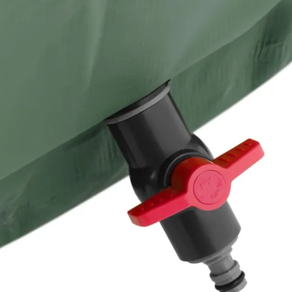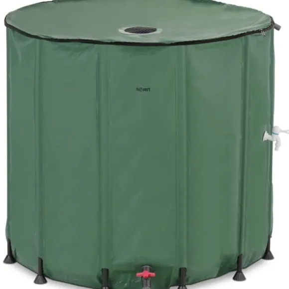 Hillverts regnvattentankhar en stor kapacitet på 1000 l. Den kan användas i hushållet, på fältet, på en camping eller på tomten. Behållaren är lätt att sätta upp, locket är tillverkat av rivsäker PVC och är spänt med plaststavar som säkerställer stabilitet. Det finns ett hål i locket för att dränera ut regnvatten in i det inre. Nätfiltret förhindrar att smuts och löv kommer in. För optimal vattenhantering har behållaren tre avlopp med filter för att hålla vattnet rent. Kranen gör att du kan fylla vattenkanna, avloppskranen i botten har en 3/4″ anslutning, som kan användas till trädgårdsslang. Bräddavloppskranen skyddar tunnan vid kraftigt regn. Materialen som används är hållbara och avsedda för utomhusbruk. Överdrag PVC är tillverkat av 500 D tyg gör att tanken kan vikas ihop för transport eller förvaring.
