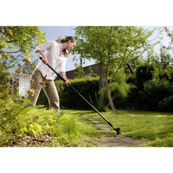 Om stenplattor och murkanter inte är särskilt djupa eller tätt övervuxna med ogräs eller mossa, kan du använda Fiskars QuikFit fogborste här. Detta hjälper för att befria övervuxna platser från mossa. För att avlägsna envis mossa eller fast smuts, är det också möjligt att använda skrapbladet, som dessutom är anslutet till enheten. Borsten på QuikFit fogborste från Fiskars är tillverkade av stål. Materialet bidrar till att en särskilt hög rengöringseffekt uppnås. Ramen på verktyget är tillverkad av glasfiberförstärkt plast. Detta material är mycket stabilt, hållbart och lätt. Produkten väger därför endast 160 gram. Dess längd är 18,5 centimeter. Verktyget kan monteras på alla skaft i QuikFit-serien. Verktyget belönades för sin design med Red Dot Design Award. Detta internationellt erkända pris delas ut av Design Centrum i Nordrhein-Westfalen för enastående produktdesign.